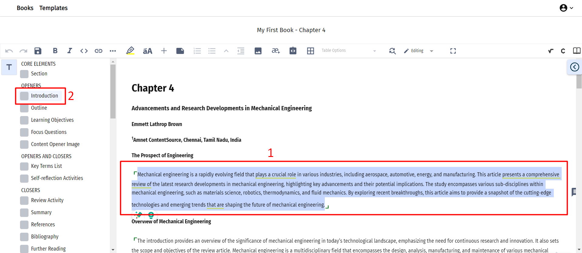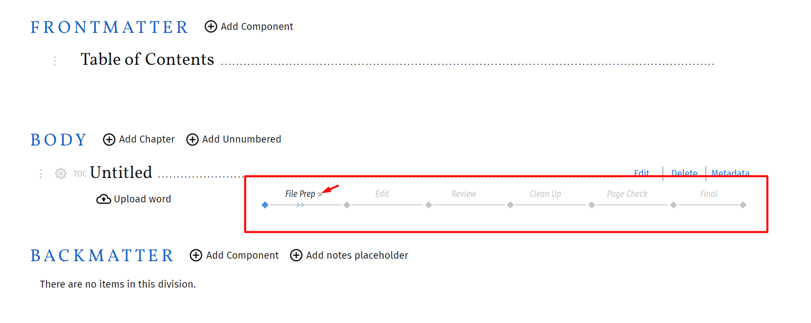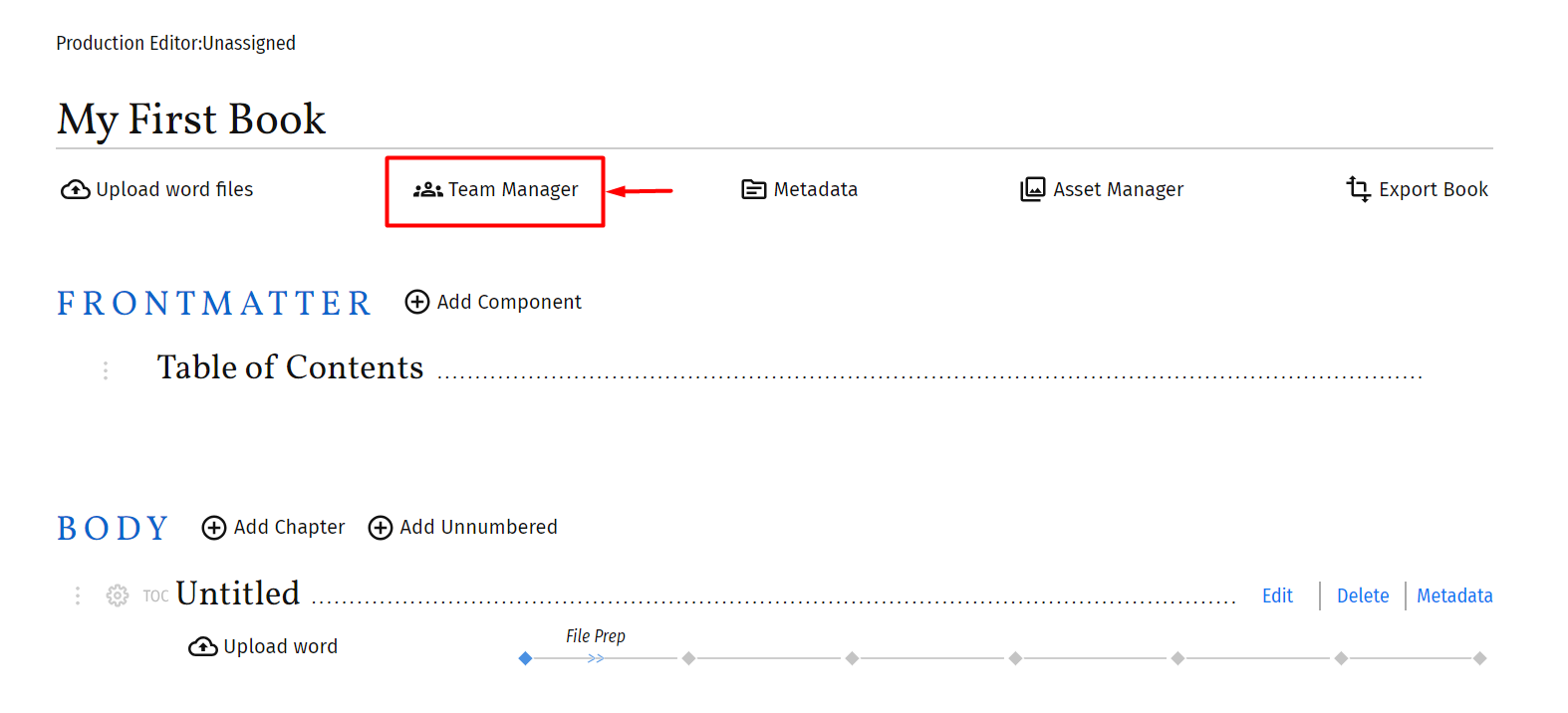 Click on "Edit" next to the book you created. Delete default chapters if you plan to upload DOCX files.