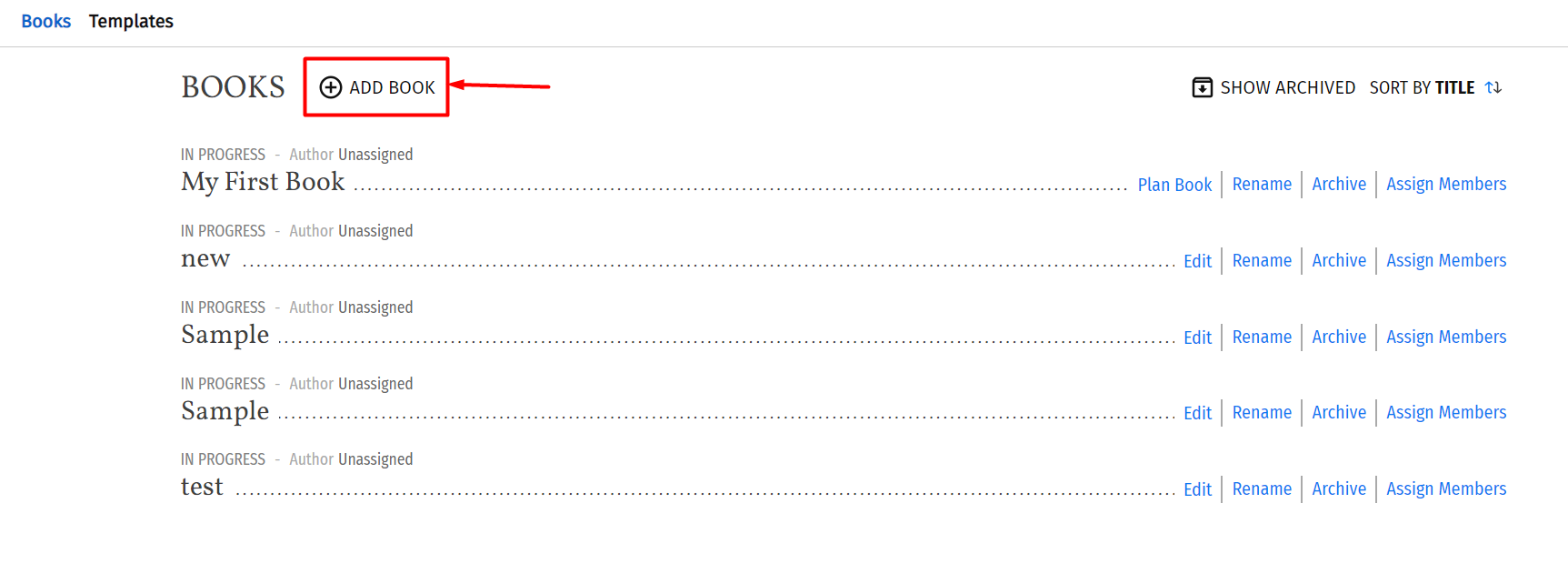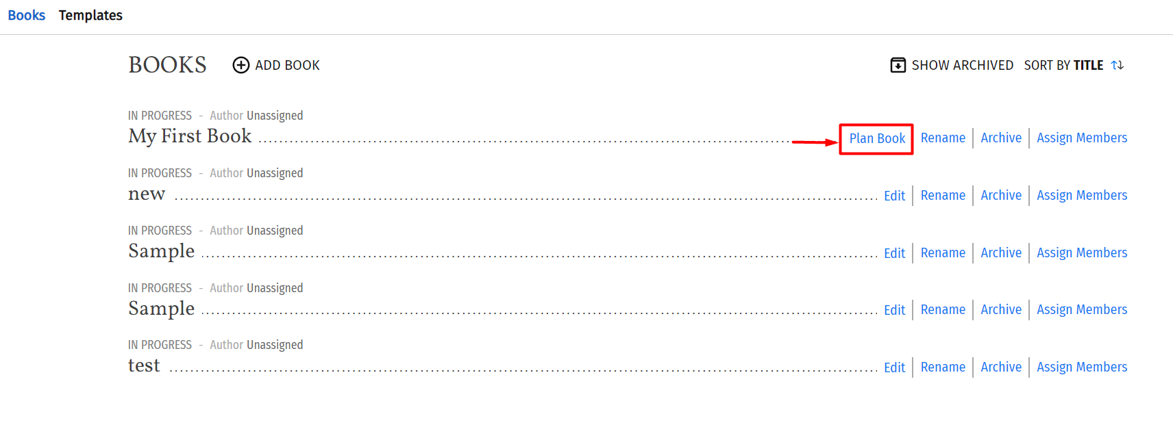 a. Add Book: Start planning a book from scratch or add an existing book.