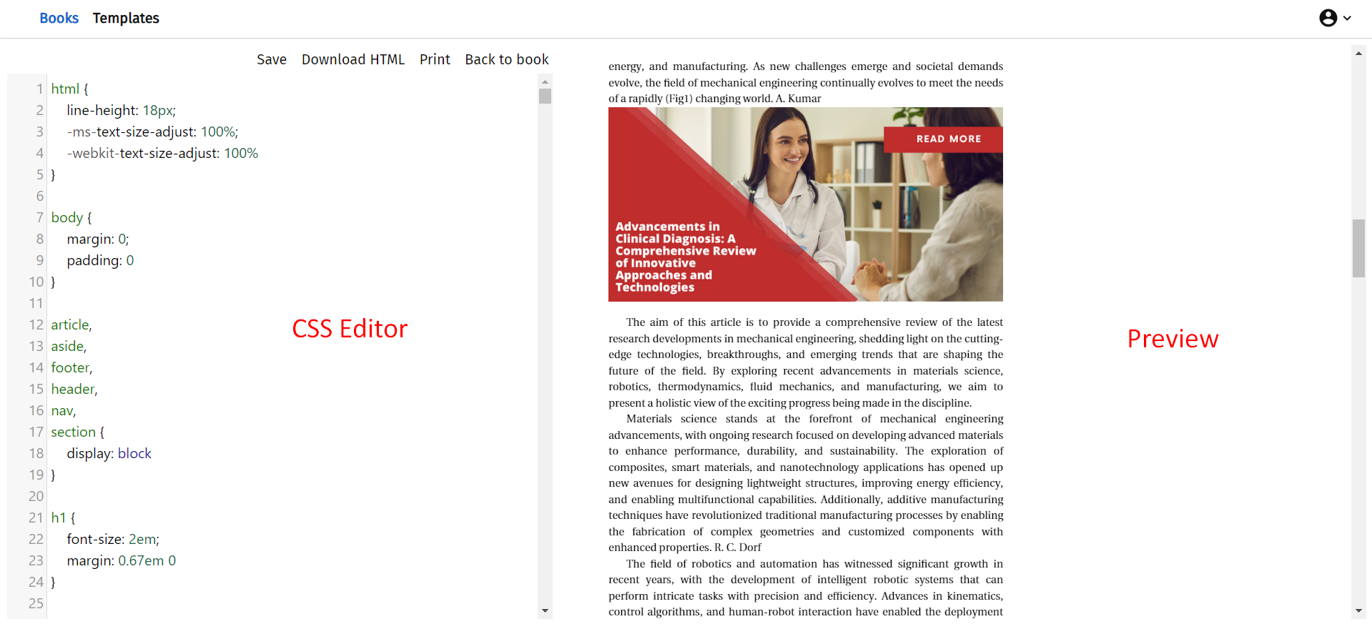 For preview, select a corresponding template and click on OK. It will open the preview along with CSS editor.