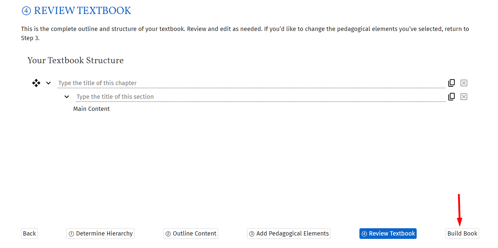 Review the entire book structure and click on "Build Book" in the bottom right section.